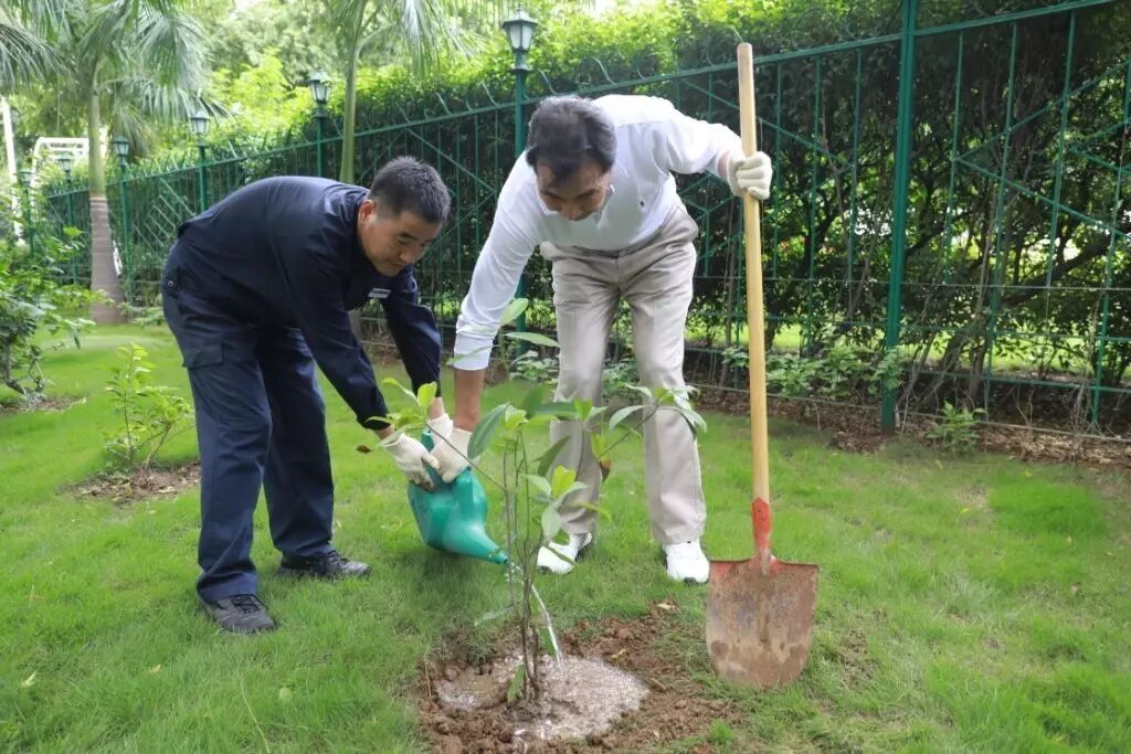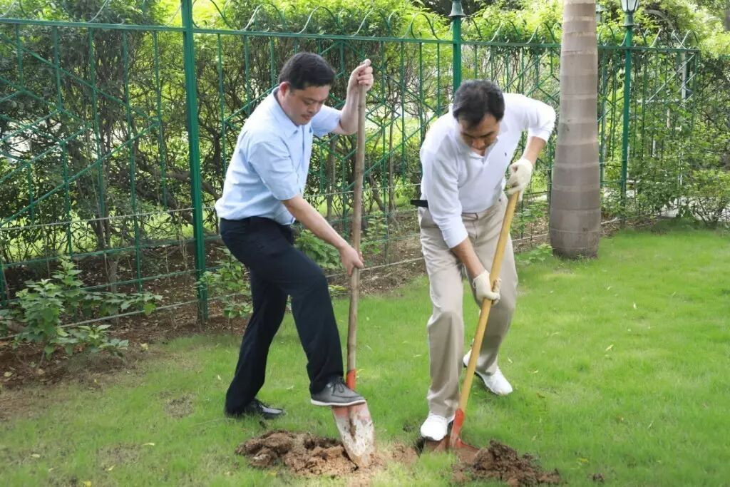 送别印方官员后,大家不顾酷暑,再次拿起铁锹,挖坑培土,施肥浇水,为使馆增添新绿。