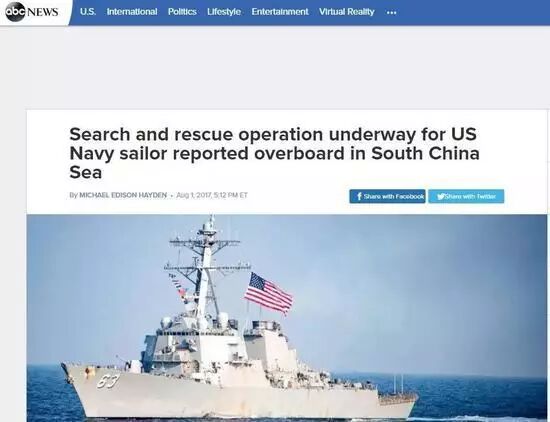 而今,美军“斯特西姆”号驱逐舰1日在南海巡航期间,一名船员失踪,美国、中国及日本出动多艘船只及多架飞机协助搜索。据香港东网5日报道,美国海军4日宣布中止搜救,并感谢中日提供协助。