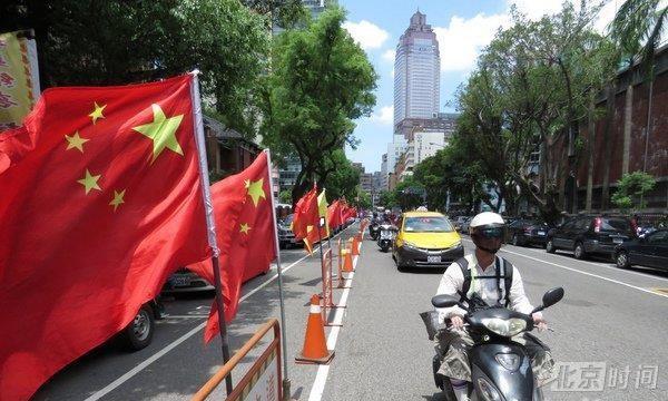 据海外网8月8日报道,台湾“统派”爱国同心会今日(8日)早在台“立法院”外扎营,将“立院”旁青岛东路一侧插满五星红旗,并布置“台湾大陆同属中国”“反‘台独’促统一”等各种标语,引起往来民众的注意。现场的爱国同心会人士表示,活动是要表达他们对于两岸和平统一的诉求。