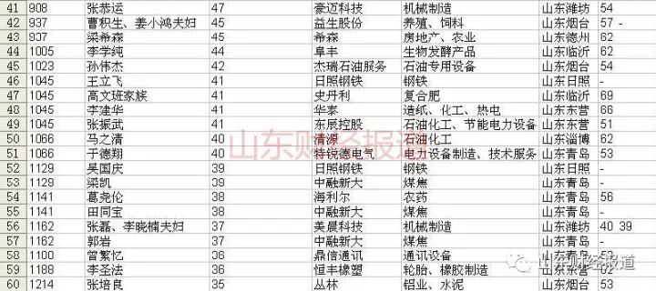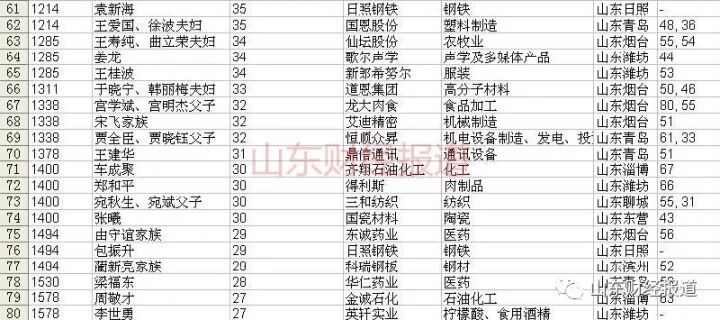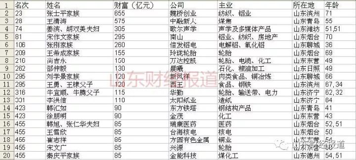 山东17城市的富豪