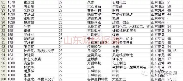 山东有113名富豪入围胡润百富榜。