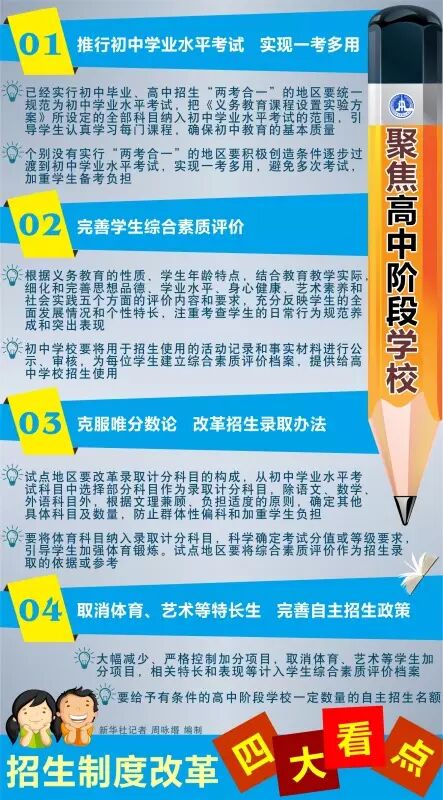9月20日,教育部正式发布《关于进一步推进高中阶段学校考试招生制度改革的指导意见》(以下简称《意见》)。《意见》提出,到2020年左右初步形成基于初中学业水平考试成绩、结合综合素质评价的高中阶段学校考试招生录取模式和规范有序、监督有力的管理机制,促进学生全面发展健康成长,维护教育公平。同时,《意见》中还提出了“两考合一”,提出了将体育科目纳入录取计分科目等多项改革措施,这些变化将深深影响着每一位中学教师和学生!