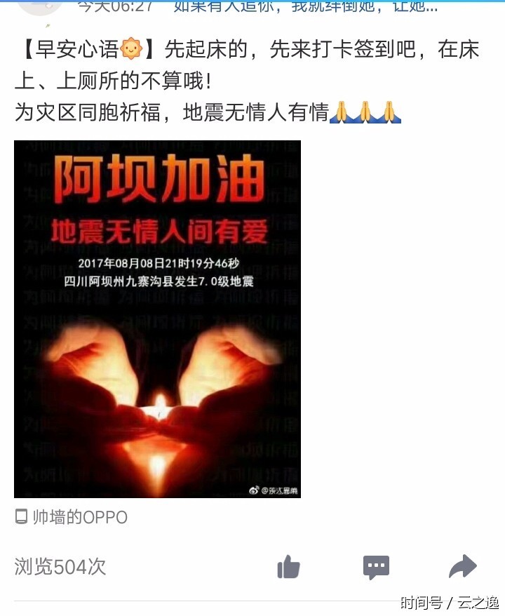 4.集体发声,让灾区同胞知道灾区外的我们时刻关注着他们。无论是安慰也好,鼓励也好,都不要忘记第一时间给在绝望边缘的他们送去温暖。