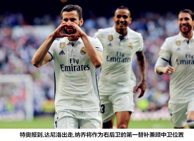 得益于卡瓦哈尔的高出勤率和纳乔在担当后防万金油时的稳定表现,在全欧洲都在寻找一流边后卫的情况下,皇马却逆势而行将作为重要轮换球员的达尼洛出售给未来的欧冠竞争对手。在巴列霍和特奥两位新人加盟之后,刚刚完成了职业生涯最佳赛季的纳乔基本就可以确定作为卡瓦哈尔的替补。上赛季末期,达尼洛能够力压纳乔成为了卡瓦哈尔受伤期间的首选右后卫,主要是得益于他的助攻能力可以满足菱形442对于边后卫的要求;新赛季,皇马的主打阵型依然是伤BBC突前的433阵型,右后卫需要表现地更加平衡而稳定,纳乔比达尼洛更适合作为非对称进攻体系中的弱侧拖后者。