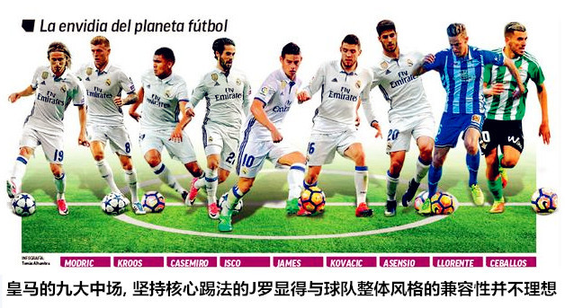 相比之下,J罗最大的尴尬就是他的实力还没有强大到足以担当一线豪门绝对核心的水平,长期坚持经典前腰核心打法造成球路过于狭窄,这让他很容易因为球路过于狭窄而在队内的竞争中步入死胡同。在竞技层面的发展进入瓶颈期的同时,J罗不断被媒体曝光的场外负面新闻一再触碰齐达内和弗洛伦蒂诺的底线,在队内核心架构愈发稳定、新人不断涌现的情况下,J罗逐渐堕落为齐达内在中场的第六选择。