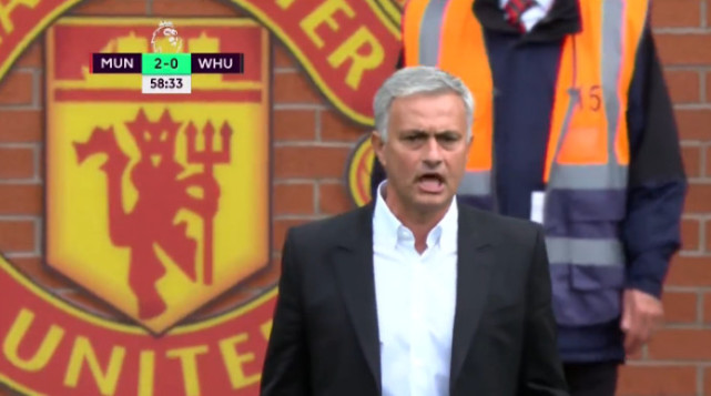 让穆里尼奥发飙的一幕出现在第57分钟,费尔南德斯中场左路斜传,阿瑙托维奇禁区中路头球冲顶击中了横梁上沿。此时,曼联以2比0领先,但在看到这一幕之后,穆里尼奥愤怒的冲出替补席,大声斥责着自己的球员。