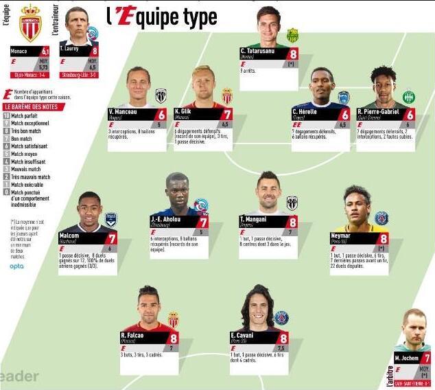 前锋线上除了传射建功的卡瓦尼外,还有摩纳哥队的锋霸法尔考,这位上个赛季恢复了状态的哥伦比亚射手在新赛季依旧强势,在本轮比赛打入三球上演了帽子戏法,他的入选没有争议。