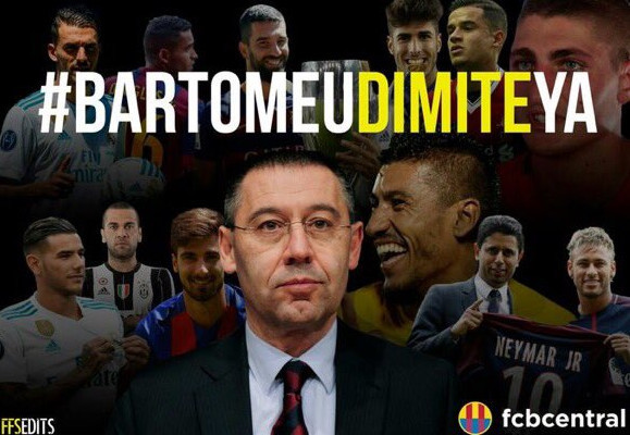 腾讯体育8月15日讯 在西班牙超级杯的首回合,巴萨兵败诺坎普,输给皇马后,宇宙队的新赛季必然蒙上了一层阴影。《每日体育报》消息,目前推特的全球趋势热门话题出现了#BartomeuDimiteYa 的话题,核心内容就是要求巴托梅乌和他的管理层辞职。