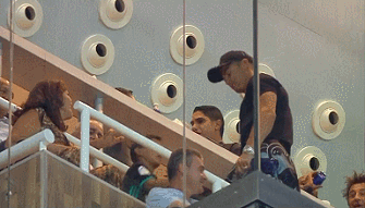 C罗因首回合红牌并推搡裁判被禁赛5场,他携迷你罗和母亲亮相看台。