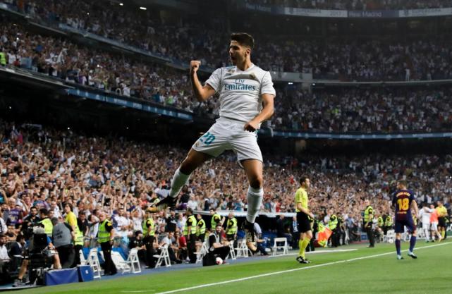 腾讯体育8月17日讯 两回合完胜巴萨之后,皇马顺利赢得西班牙超级杯,头号功臣当属两回合都打入世界波的阿森西奥。在伯纳乌进行的次回合,阿森西奥开场4分钟就远射破门,成为史上第4名西班牙超级杯两回合都攻破巴萨球门的皇马球员。
