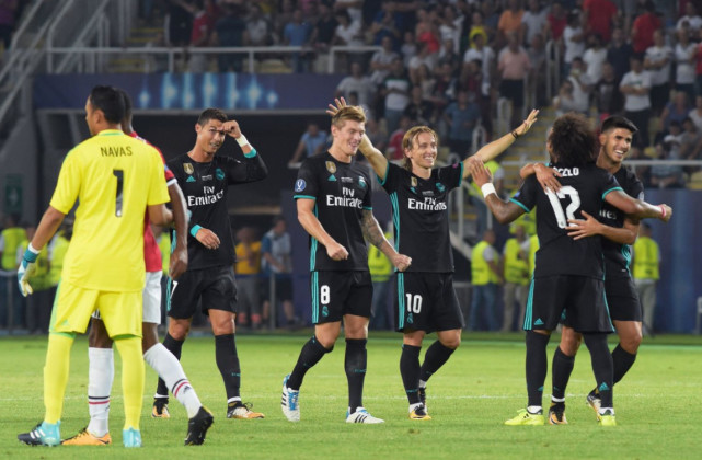 腾讯体育8月9日讯 新赛季正赛首战,皇马就夺得欧洲超级杯冠军,击败上赛季欧联杯霸主曼联。头号球星C罗只在最后关头上场亮个相,与缺席无异,而两队首发阵容对比,皇马总身价要少1.3亿英镑,但赢家依然是实力更强的西甲豪门,打入2球并射中两次门柱,无C罗坐镇中军,欧冠冠军依然从容获胜。