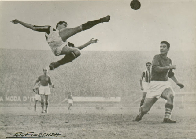 堪称意甲最经典画面的帕罗拉的那脚惊天侧勾,右侧就是充当背景板的潘多尔菲尼