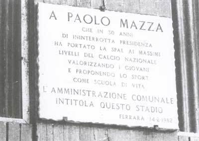 1977年,为斯帕尔服务超过三十年的传奇主席保罗-马扎卸任,一个时代宣告结束,1981年,80岁的马扎去世,生前他和意大利足协保持了良好的关系,在成为斯帕尔主席之前还在1962年担任过意大利国家队的主教练,参加了智利举行的世界杯,斯帕尔的体育场为了纪念这位英雄将自己的体育场命名为保罗-马扎体育场。