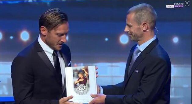 该奖项是授予那些对足球做出巨大贡献,并有着非凡职业素养和个人素质的人。40岁的托蒂职业生涯都在罗马度过,他为球队786次出场打进307球。从代表罗马上演一线队首秀,托蒂在俱乐部效力了24年零2个月。欧足联主席切费林表示:“他将自己人生1/4的时光献给了自己热爱的罗马,我要祝贺托蒂,向他那梦幻般的职业生涯,以及他对足球和罗马俱乐部非凡的忠诚和奉献精神表示致敬。”