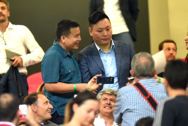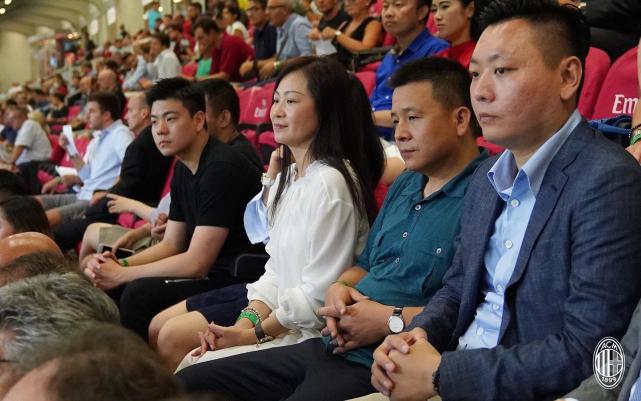 AC米兰主席李勇鸿携全家亮相圣西罗球场,他的儿子(黑色衣服)首次公开亮相
