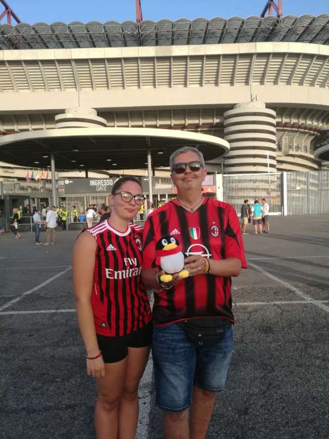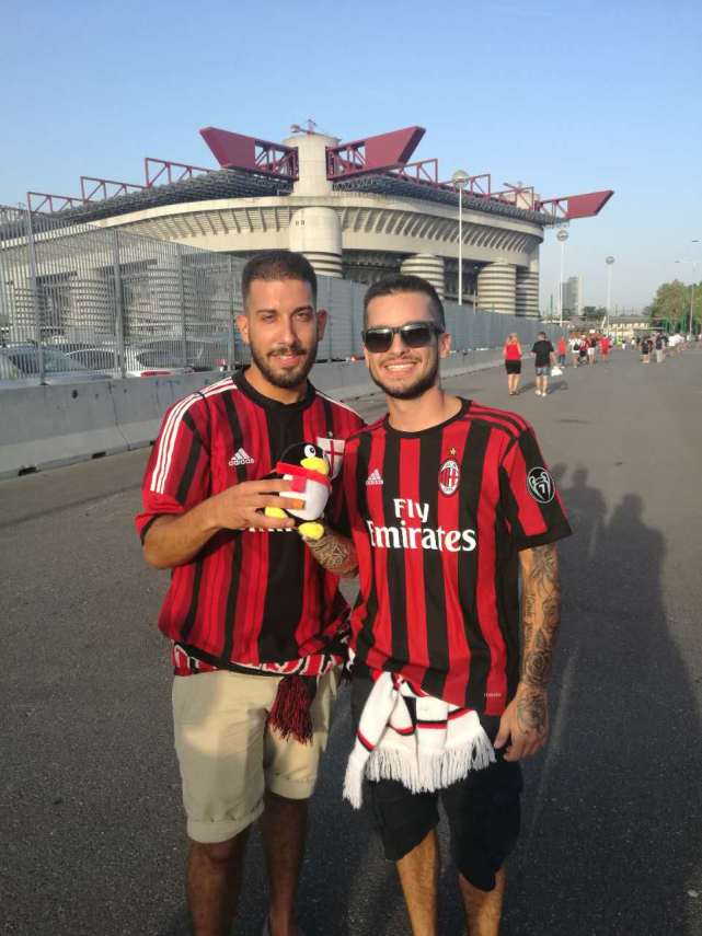 在进入圣西罗体育场之前,我们又拦下了一对可爱的父女,父亲已经是AC米兰30年的球迷,如今让女儿继承了自己的衣钵,一生红黑,两代红黑。
