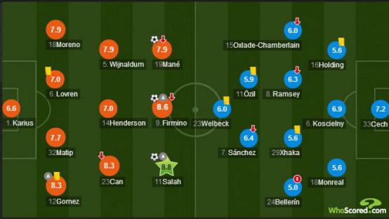 在与阿森纳的比赛中,利物浦首发三中场为亨德森、詹和维纳尔杜姆