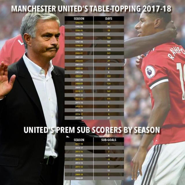 从英超首轮到本周末英超第4轮开打前,曼联在新赛季英超待在榜首的时间有27天,但过去4个赛季,曼联待在榜首的时间分别是2天、0天、8天和6天,总和才16天,也就是说,就算刨去两周国际比赛日,曼联在新赛季前4轮待在榜首的时间也超过了过去4个赛季总和。