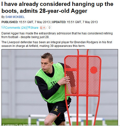 另一名可以客串左闸的红军后卫阿格也因为伤病过早的放弃了职业生涯。2011-12赛季,他因膝盖伤势复发在4月初就宣布赛季报销。当时是2013年,仅仅28岁的阿格就公开表示,由于伤病太多,他已考虑退役,即使现在不退役,他踢球的时间也不长了。