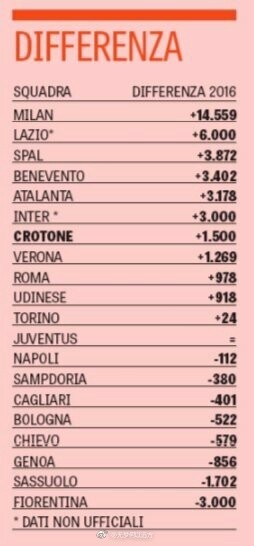 意甲各球队季票销售涨幅情况