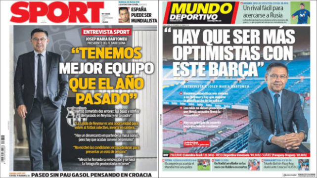 而在接受《每日体育报》采访时,巴托梅乌称,巴萨本赛季的阵容比去年更强。“有些球迷对本赛季持悲观心态,但我们必须终止流言。我们的队伍比去年更强。内马尔的离队给了巴萨一个回归团队足球、挖掘新人的机会。”