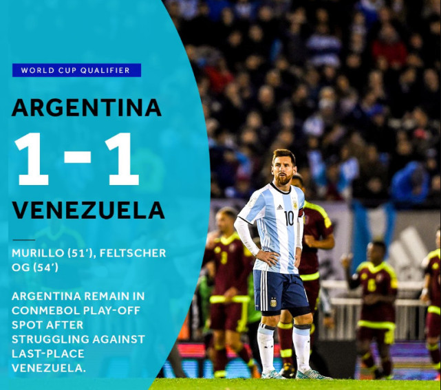南美区世预赛采取大循环联赛赛制,前4名直接进军世界杯,第5名要打附加赛。16轮战罢,巴西37分提前晋级,乌拉圭27分排次席,哥伦比亚26分排第3,秘鲁24分第4,阿根廷同积24分,因进球少排第5,之后依次是智利23分,巴拉圭21分,厄瓜多尔20分。