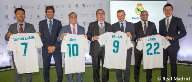 据悉,皇马公关经理布特拉格诺,俱乐部总经理何塞-安赫尔-桑切斯,球队名宿劳尔,罗伯特-卡洛斯一同出席了此次合作仪式。