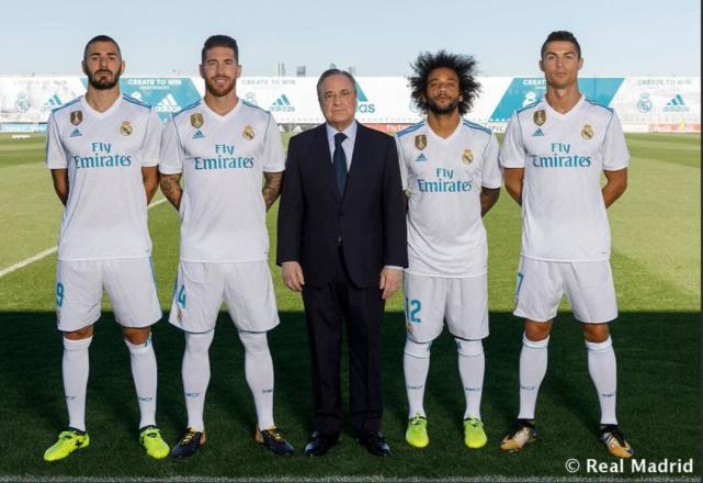 今天皇马的巴尔贝巴斯体育城非常热闹,因为皇马主席弗洛伦蒂诺和荣誉主席亨托一起来到了球队训练基地,与本赛季皇马一线队将帅拍摄新赛季的全家福照片。与球队一起合影的还有皇马这两年收获的各种奖杯,其中上赛季的联赛冠军和欧冠冠军最为引人瞩目。弗洛伦蒂诺除了和皇马一线队全体将帅合影之外,还分别与皇马青训球员、皇马本赛季新援和皇马队长合了影。