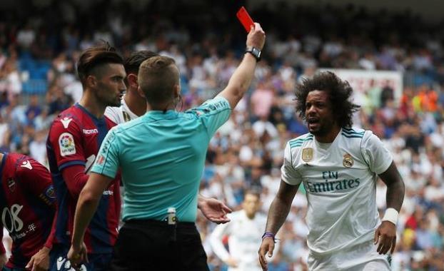 皇马在上周六的西甲联赛中被弱旅莱万特1-1逼平,后者在比赛中率先破门得分,而“银河战舰”则在比赛第36分钟才依靠巴斯克斯的门前推射将比分追至1-1。随后皇马再无力改写比分,这样的结果似乎令马塞洛心态失衡。他在比赛临近结束前与对方中场莱马尔拼抢后倒地,随后顺势脚踢对手,被红牌罚下。