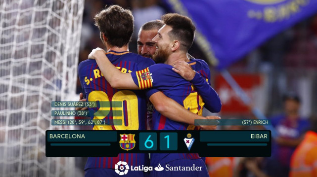 下半时埃瓦尔逼抢力度下降,巴萨就可以利用技术能力优势打出快速传递配合,随心随欲打反击杀伤对手,梅西上演大四喜,丹尼斯-苏亚雷斯也与暴力鸟一样连续两轮破门。巴萨6-1大胜,送给埃瓦尔征战西甲历史上最大比分惨败。