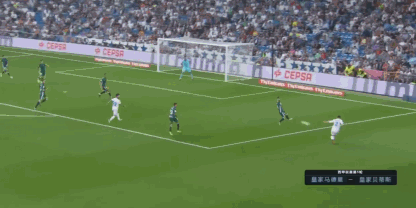 第10分钟,伊斯科传中,拉莫斯禁区后点头球摆渡,C罗背对球门脚后跟磕球射门,哈维-加西亚门线前将球挡下。