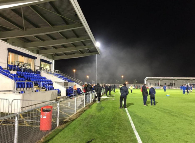 《太阳报》披露,这场比赛在进行到上半场还有3分钟就要结束时,被球场女厕所的火警被迫打断,看台上的观众被迅速疏散,而球场上的球员和教练则聚到球场中央,等待火被扑灭。从《太阳报》提供的图片可以看到,这只是一个小型球场,虽然没有看到明火,但却可以看到大量浓烟。