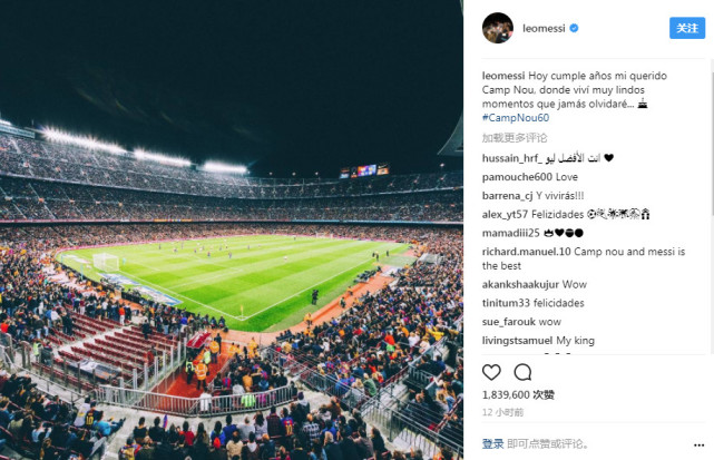 腾讯体育9月25日讯 昨天是诺坎普球场60岁生日,作为巴塞罗那俱乐部的头号球星,阿根廷天王梅西通过社交网络发表了自己对于该座伟大球场的祝福。