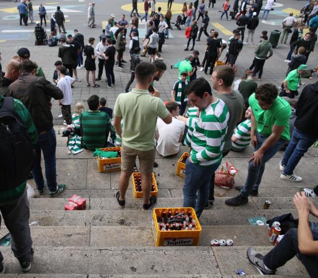 因为在首轮欧冠小组赛中,凯尔特人被欧冠新贵巴黎圣日耳曼以5-0血洗,为此,来到比利时布鲁塞尔的苏格兰球迷都憋足了一口气想要挽回面子。《太阳报》披露,数以千计的凯尔特人球迷赛前就在布鲁塞尔街头游荡并且喝了一整天的酒,大街小巷到处可以见到啤酒瓶和垃圾。