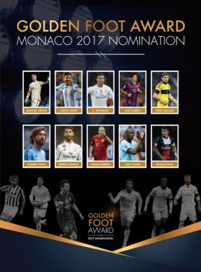 2017年金足奖10人候选名单已经公布,分别是皇马头牌C罗、巴萨巨星梅西、皇马队长拉莫斯、拜仁门神诺伊尔、波尔图的西班牙门将卡西利亚斯、拜仁老将罗本、巴黎铁卫蒂亚戈-席尔瓦、巴萨前锋苏亚雷斯、曼城中场亚亚-图雷、在美国大联盟踢球的意大利中场皮尔洛。
