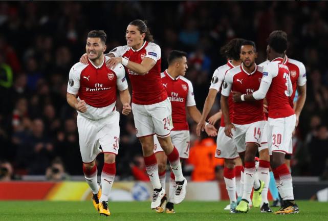 腾讯体育9月15日讯 北京时间9月15日凌晨,2017-18赛季欧联杯小组赛首轮,AC米兰客场5-1大胜奥地利维也纳,安德烈-席尔瓦上演帽子戏法,恰尔汉奥卢1射2传;阿森纳轮换多名主力仍然在主场3-1逆转击败科隆,科拉希纳茨、桑切斯和贝莱林分别建功;亚特兰大主场3-0大胜埃弗顿,鲁尼难救主;尼斯客场5-1大胜比利时球队威尔郡,普莱亚2球,巴洛特利传射建功。