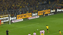 第58分钟,裁判再度在视频助理裁判帮助下认定克伦特尔手球犯规,多特蒙德获得点球机会。随后奥巴梅扬操刀主罚命中左下角,比分改写为3比0!