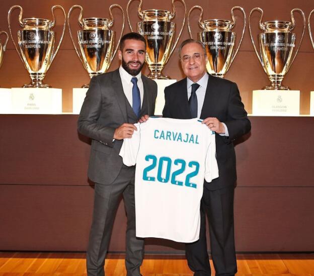 卡瓦哈尔今天正式与皇马签下了一份新合同,他将会与球队续约至2022年。对于自己与球队签下新的合同,卡瓦哈尔的感受是:“没有什么能比和心爱的球队续约更令人兴奋的事情了,皇马就是我生命中的一部分,续约让我继续效力皇马的梦想成真。我在效力皇马期间有幸拿到了所有的冠军,我希望能够再拿一遍。等到我退役的时候,我希望皇马球迷能记住我对球队的贡献。”