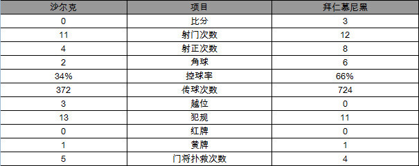全场比赛,拜仁慕尼黑12次攻门8次射正收获3球,沙尔克11次攻门4次射正颗粒无收。拜仁控球率达到66%,沙尔克只有34%。