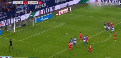 第23分钟,J罗禁区左侧下底传中,纳尔多手球犯规,主裁判在视频助理裁判认定后判罚点球。随后莱万多夫斯基操刀主罚命中左下角,拜仁慕尼黑1比0领先沙尔克。