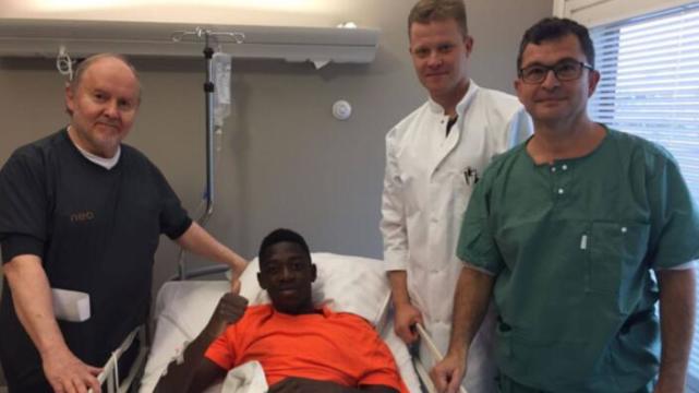登贝莱的手术很成功,他是左大腿股骨二头肌肌腱断裂,医生预计他将缺阵3个半月时间。不过登贝莱在个人社交网络中上传了巴萨队友穿球衣支持自己的照片,并表示要在2个月回归。