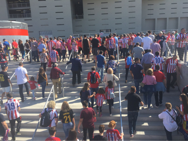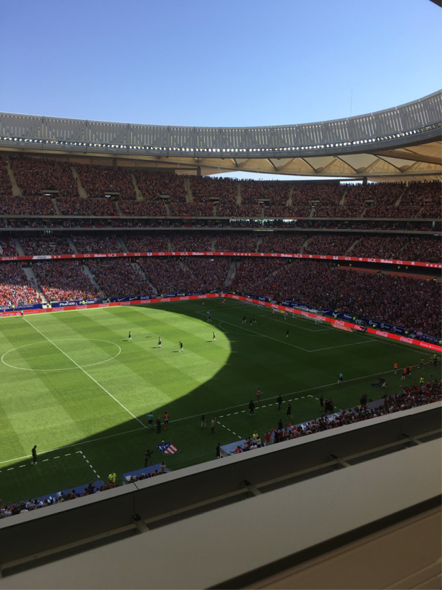正午时间的比赛比起皓月当空群星闪烁的夜晚,火药味要淡上许多。尤其在忙碌了一星期后本该睡到日晒三竿的周六,马竞球迷为了亲眼见证球队从积分榜上跃升到第二名而起了个大早,睡眼惺忪地从四面八方聚拢到万达大都会球场附近,要知道,马竞的新主场背靠群山位置偏僻,四周还都是些未经开发的荒地,一些球迷赶来这里观看比赛光是路程就要两小时,但西班牙人的乐天性格使得舟车劳顿的疲惫很容易就被兴奋激动等情绪所替代,三两好友在流动的小吃车旁偶遇,举着啤酒面包说说笑笑搂搂抱抱,畅想着球队一路高歌猛进的大好前景,再是困倦的神色也都一扫而光。【】【】