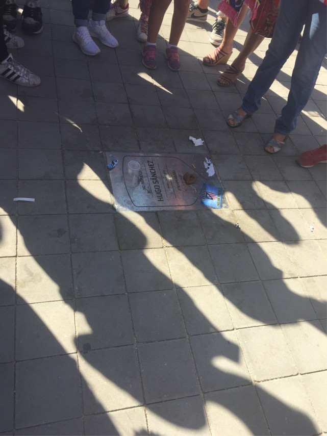 说到马竞这个传奇走廊,前段时间也是惹出不少非议,由于评判标准是达到百场,很多俱乐部历史上的知名叛徒也位列其中,比如墨西哥传奇巨星乌戈-桑切斯,他在1985年转投马竞的同城死敌皇家马德里,从此马竞球迷就和他有了不共戴天之仇,时隔三十二年依然耿耿于怀厌恶不减分毫,床单军团的支持者向来以爱憎分明性情暴烈闻名西甲,万达大都会的首秀便在他的铭牌上堆满垃圾以示不满,这场更是不会放过羞辱叛徒的机会,简单直接地奉上一坨屎,引来路人纷纷拍照围观。