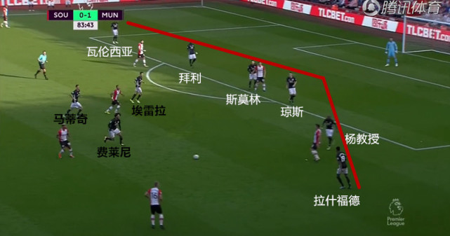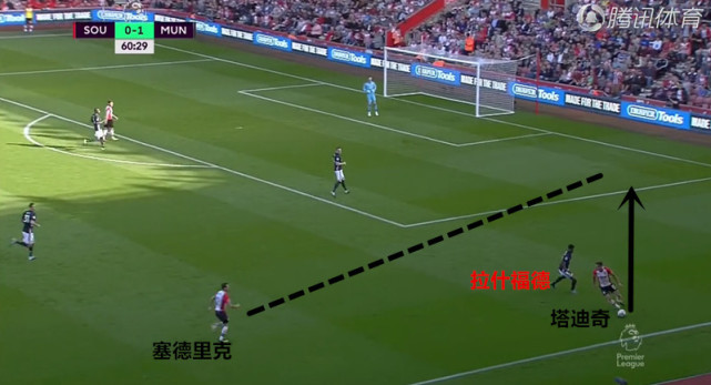 在右路,圣徒的进攻主要依靠塔迪奇与塞德里克的配合,塞尔维亚人利用自己的控球与传球,给后插上的葡萄牙国脚制造机会。比如第61分钟,拉什福德和杨教授中场配合被罗梅乌抢断,拉师傅拼命回追到边线防守塔迪奇,但此前倒地的扬未能及时回防,而塞德里克趁机高速前插,塔迪奇转身送球,圣徒右后卫精准传到门前,可惜肖恩-朗包抄没有顶到。