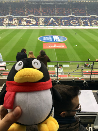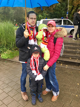 赛前,笔者在球场外遇到了一家四口远征的科隆球迷,这位父亲表示:“虽然我们遭遇了有史以来最差的开局,但我们会依然支持球队,始终相信球队能够留在德甲,所以我带着孩子和老婆来到了这里。”