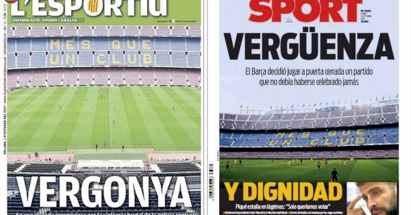 后来比赛如期进行,巴萨主场大胜,加泰罗尼亚当地媒体反应激烈。《体育报》和《加泰罗尼亚体育报》认为,俱乐部这样的决定是可耻的。《体育报》认为,“这是场原本就不应该进行的比赛,但巴萨高层最终还是决定闭门比赛。”《加泰罗尼亚体育报》表示,“在警察用暴力对抗民主这么可耻的一天,巴萨踢了场原本应该延期的比赛。”