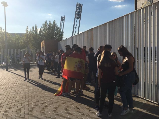 不知道是真的有那么多的国旗,还是因为特别留意的缘故,总感觉这次在马德里见到的西班牙国旗要比以往几次来多了许多,阳台外,桅杆上,比比皆是。10月的马德里,即便是到了傍晚5、6点,仍是烈日当头,而为了在Las Rozas训练基地观看本次西班牙国家队集合的公开训练,上百名球迷已在没有任何遮挡的基地门口排队等待了2个多小时。