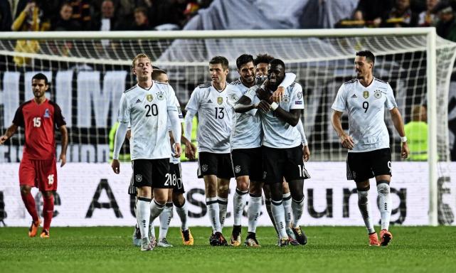 提前一轮晋级世界杯,最后一轮又是主场对阵实力不强的阿塞拜疆,勒夫排出了一套攻击力极强的阵容,锋线同时排出了萨内、穆勒、瓦格纳、布兰特四名球员。依靠主场优势,德国早早破门,格雷茨卡漂亮的脚后跟射门帮助德国队取得领先。而在下半场,萨内送出的妙传又让格雷茨卡轻松推射破门。此役梅开二度之后,格雷茨卡12次为德国出场参与8球,打入6球,送出2次助攻,对于一名中场球员来说,场均0.5球的效率足够出色。