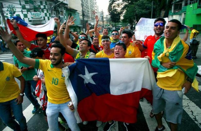 巴西智利球迷赛前还其乐融融,巴西比赛中却毫不留情