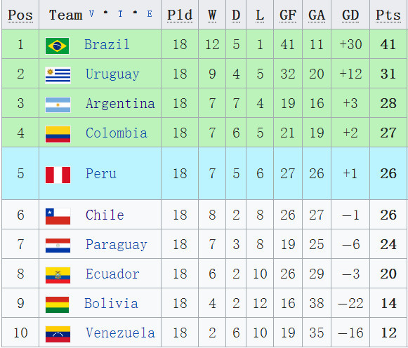 一言以蔽之,如果没有一年以前的“举报事件”,智利应该排名南美区第5位、去与新西兰踢跨大洲附加赛,巴拉圭第6,秘鲁则只能排在第7。可现实的世界里没有“如果”,一次举报,让秘鲁“可钉可铆儿”的积分追平本队、净胜球超出2个,现如今智利人只能吞下自己一年前酿造的苦酒了。